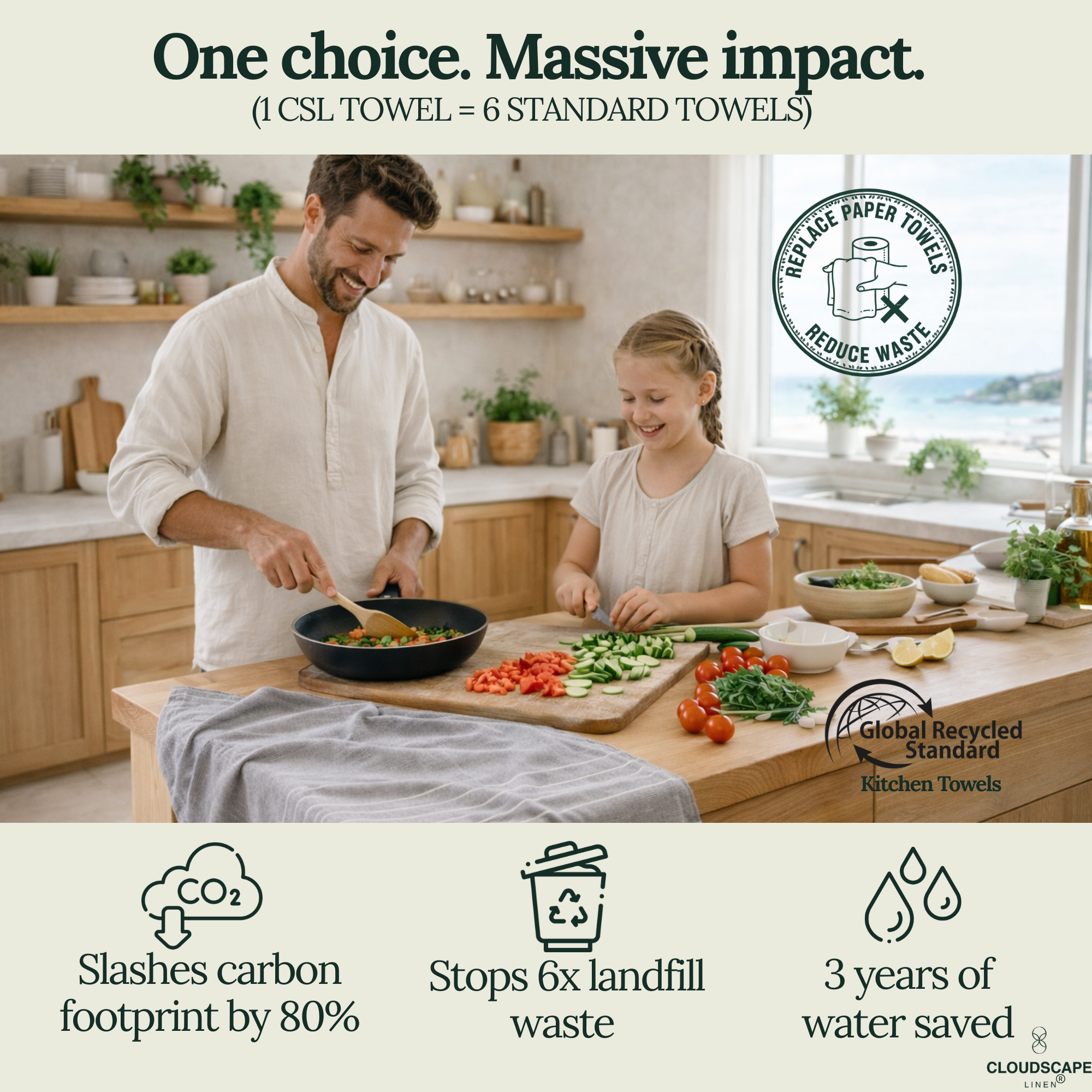6-Piece Oversized Ribbed Slub Kitchen Towels - Aqua, Indigo, Grey