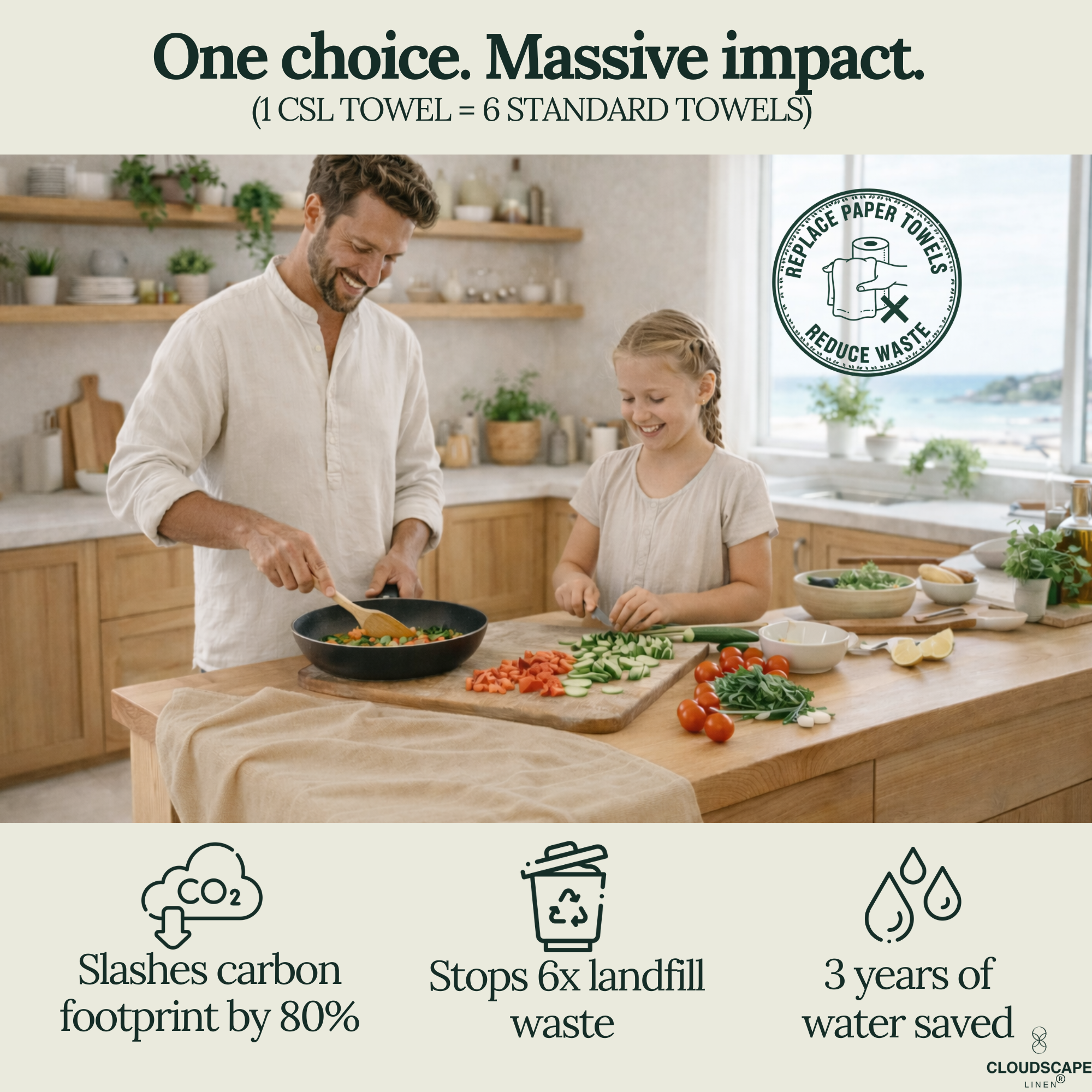 6-Piece Oversized Ribbed Slub Kitchen Towels - Beige, Olive, Rust
