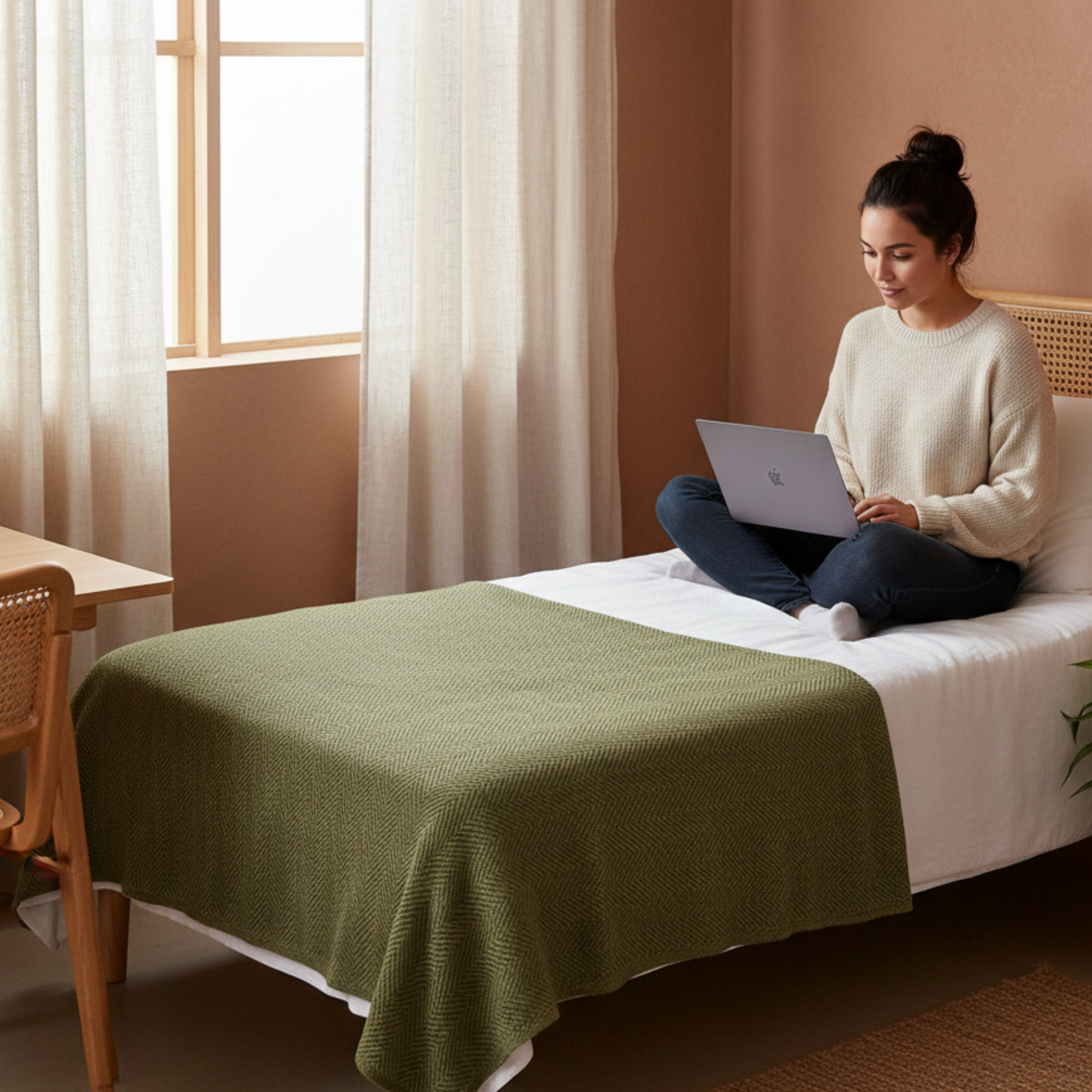 This is a beautiful, reasonably dense, heavy, generous-sized cotton blanket. I love it. Woven cotton blankets have been a long-time favorite of mine because they let your skin breathe. Unlike most, this has a tighter weave that won't unravel. The weight helps me feel more secure and calms me down, making it easier to fall asleep.