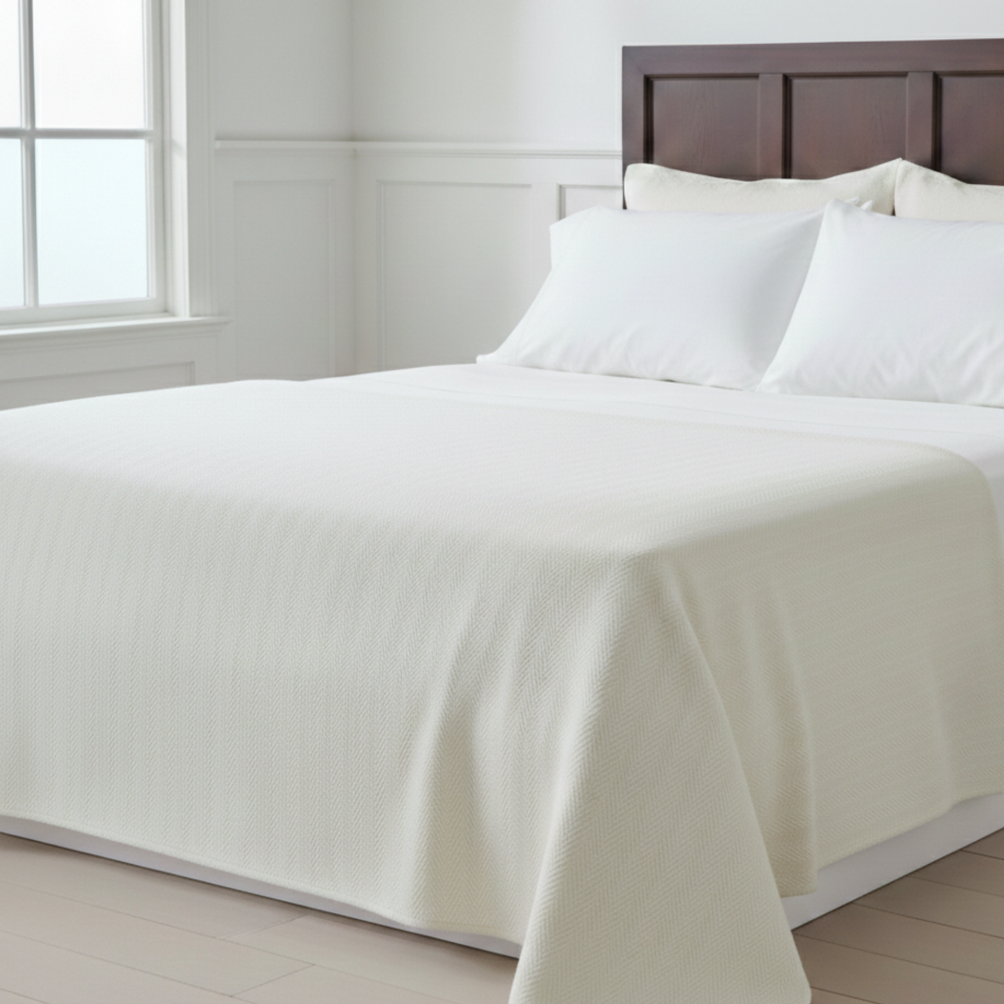 This blanket is soft and on the thinner side, not thick and heavy – perfect for sleeping. If you hold it up to the light, you cannot see through it – it is solid, just not bulky. The blanket kept me warm, however, I did not wake up sweating or feeling too hot. The blanket laundered well (according to the directions), the stitching held up and did not start unraveling. As a bonus, the blanket came in a cotton fabric bag that can be used for multiple purposes. I recommend this blanket.