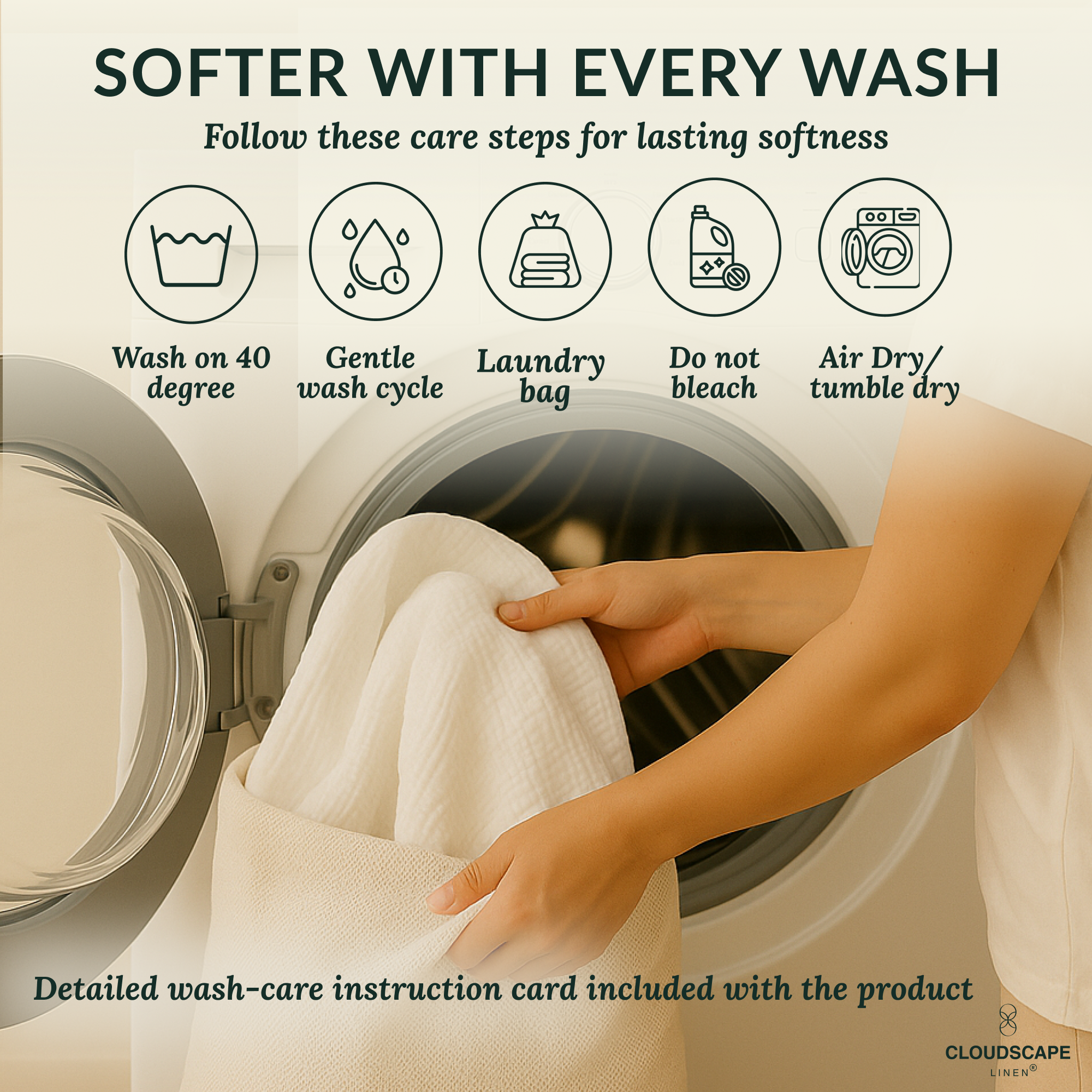 Wrap yourself in comfort and elegance with the Cloud Scape Linen Muslin Blanket. Designed for year-round use, this luxurious blanket offers the perfect combination of softness, breathability, and versatility.