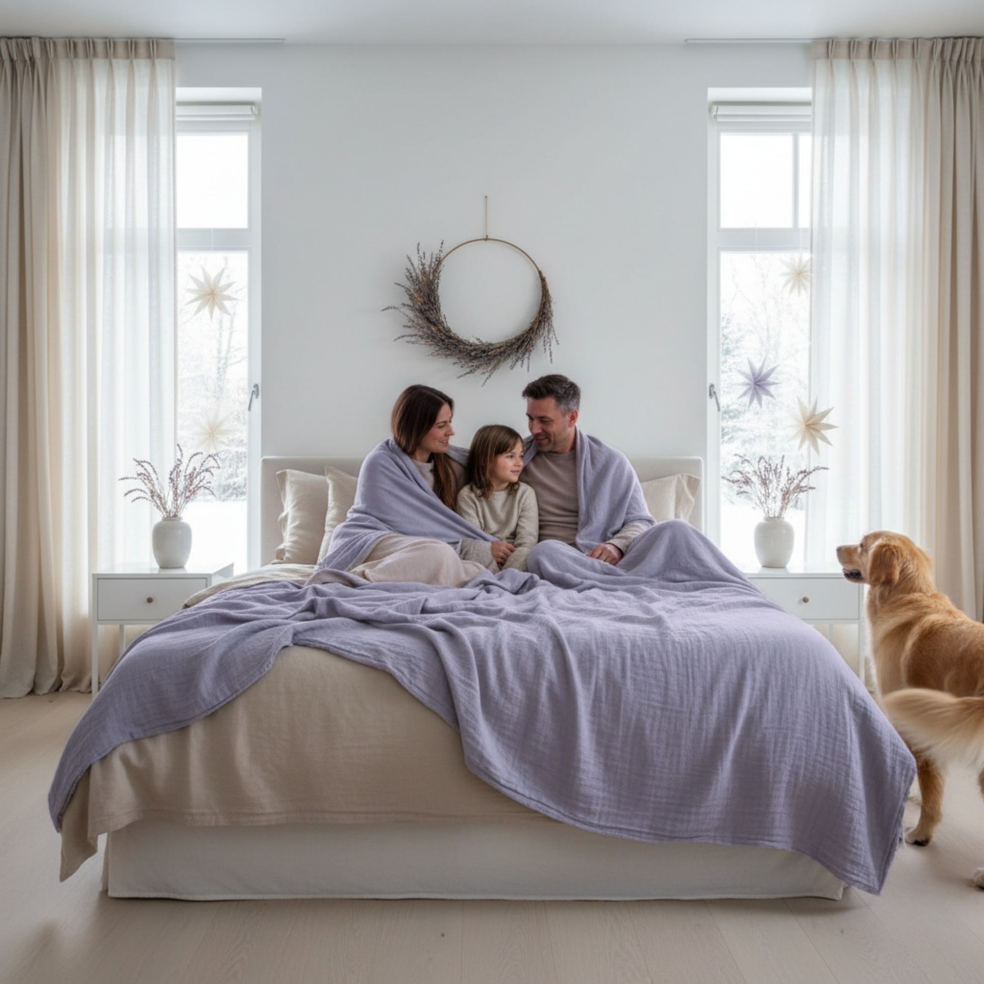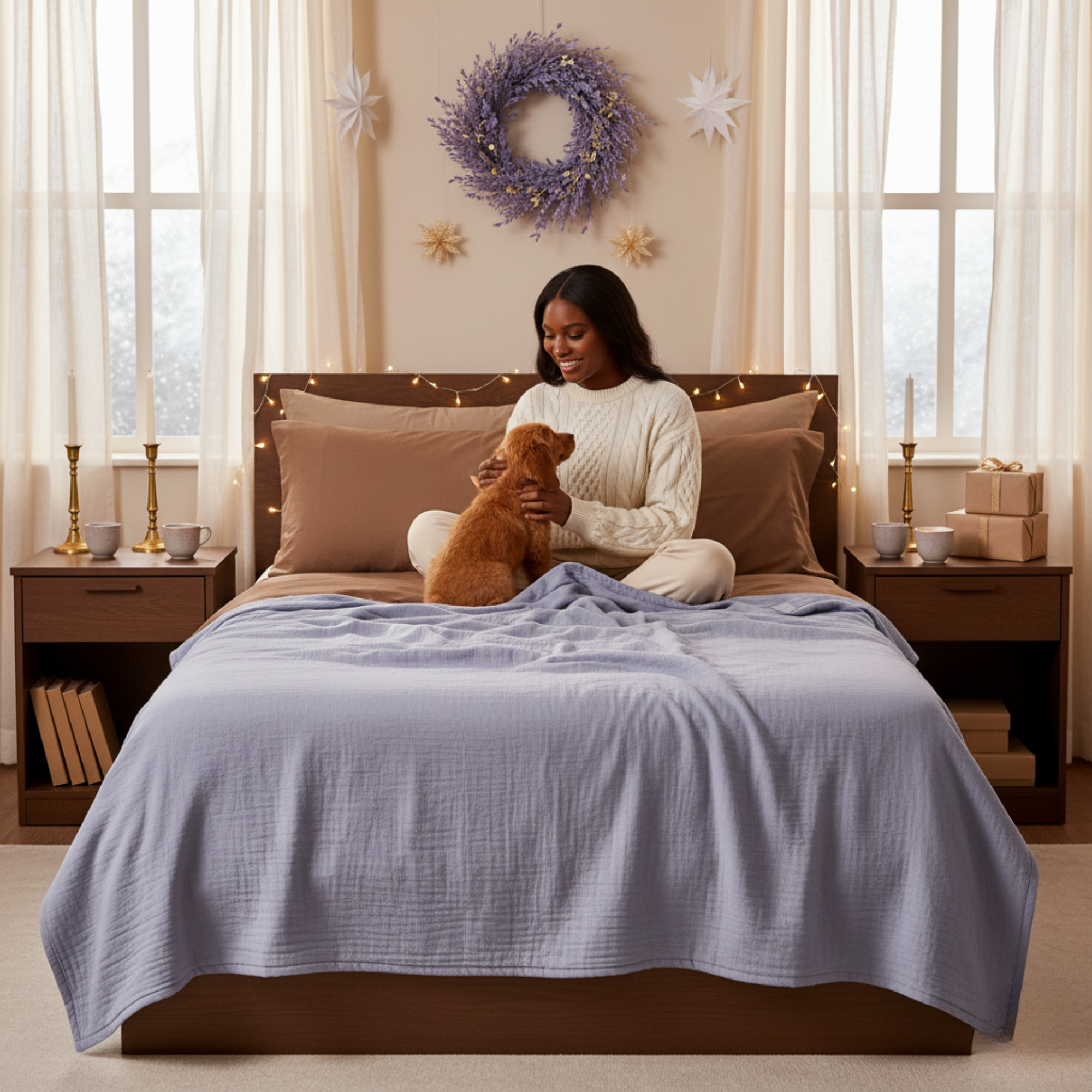 8 Layer Cotton Muslin Blanket - Lavender Blue