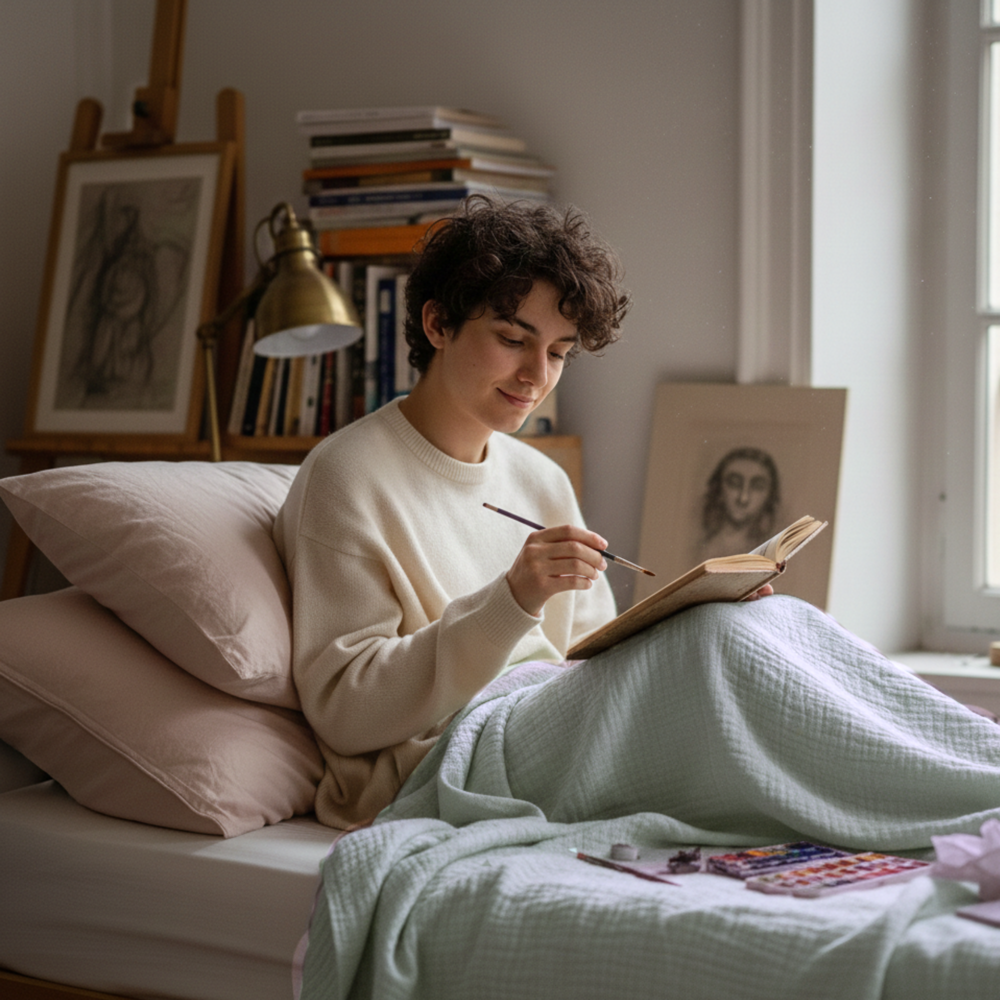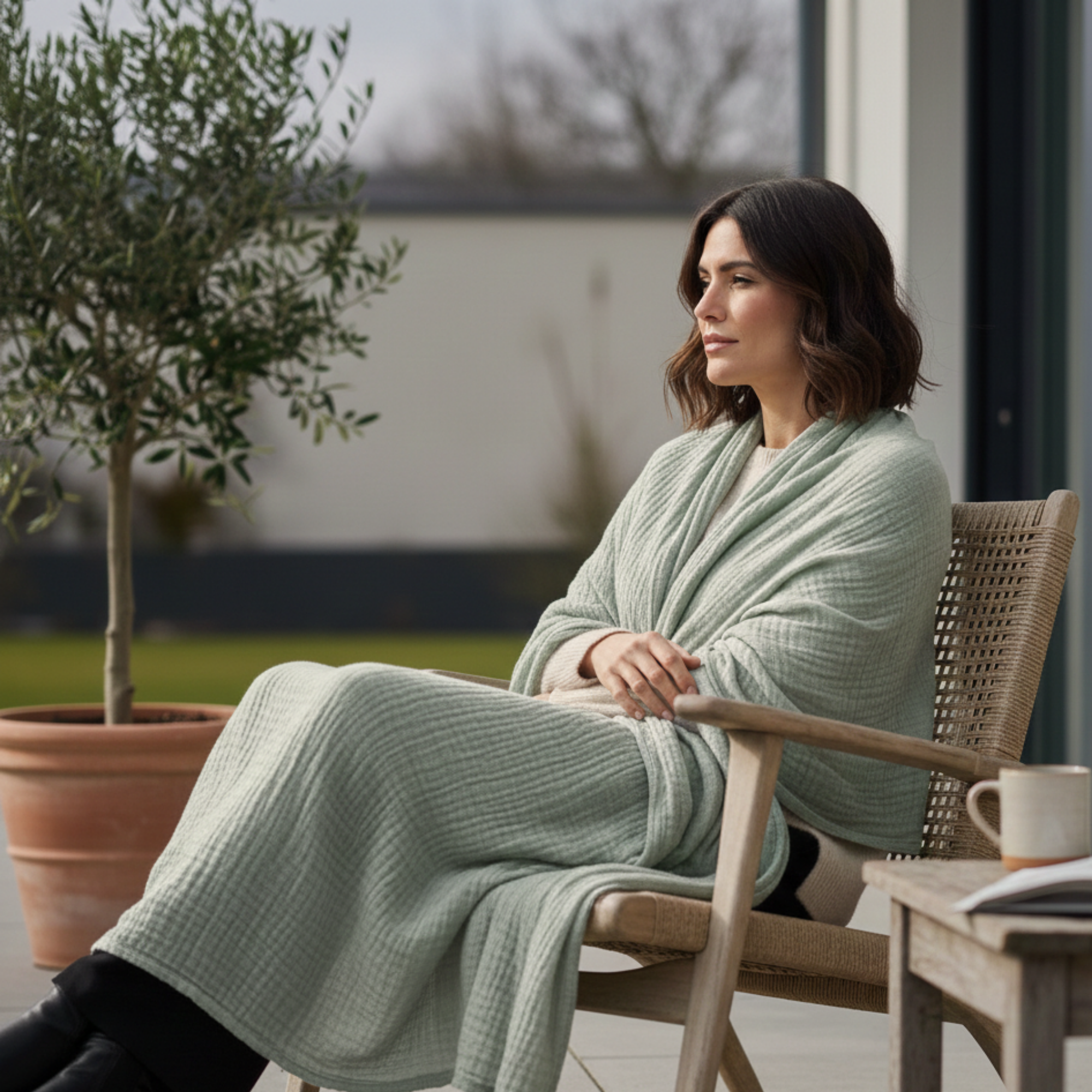 Wrap yourself in the quiet luxury of the Cloud Scape Linen 8-Layer Muslin Blanket. Crafted for year-round comfort, its breathable cotton layers offer cool ease in summer and gentle warmth in winter. The naturally absorbent weave keeps you dry through the night, while its soft, enveloping texture creates a cocoon of calm that only deepens with every wash.